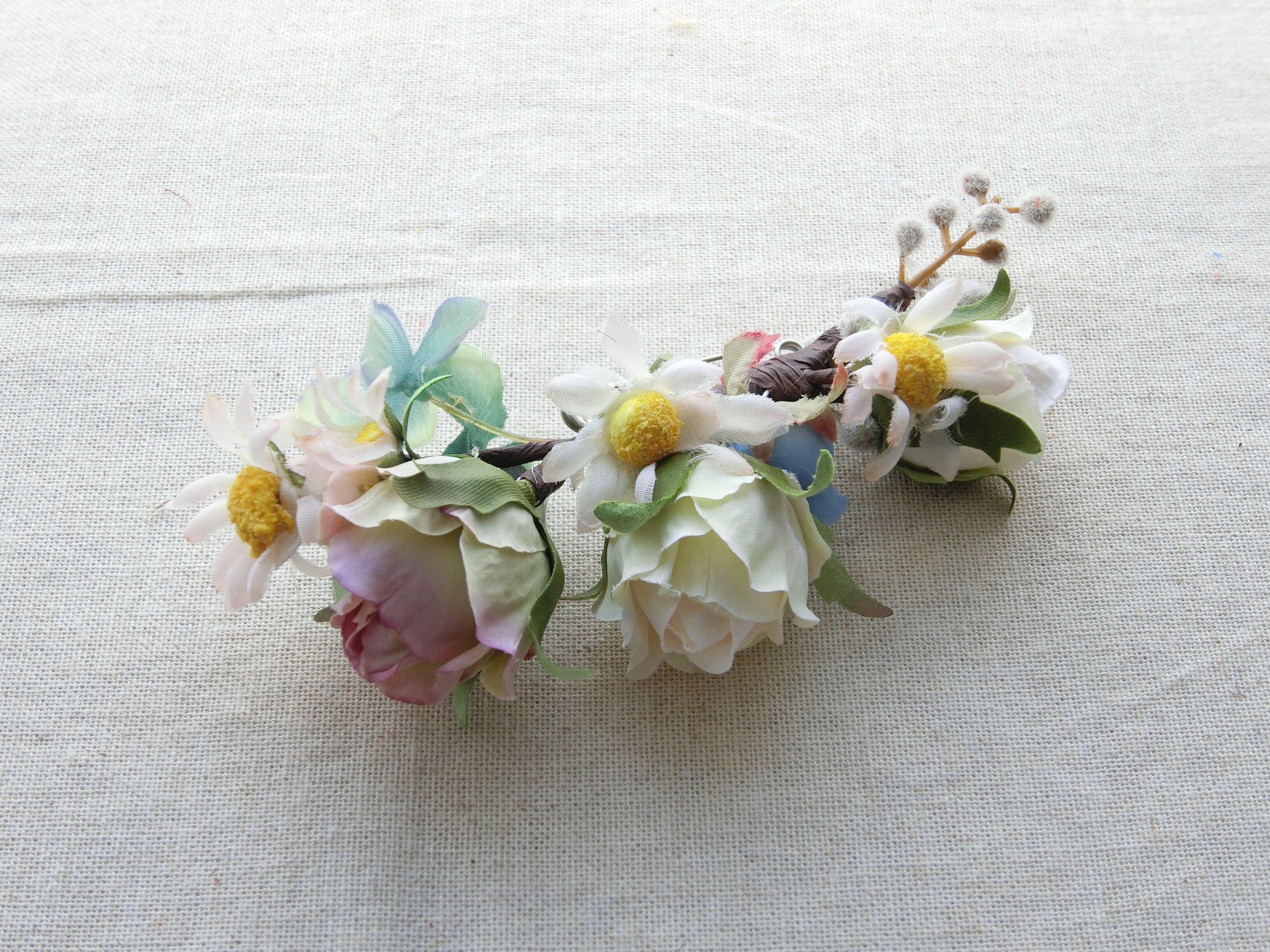 帽子を飾るお花のかんむりのようなブローチのオーダー商品です。