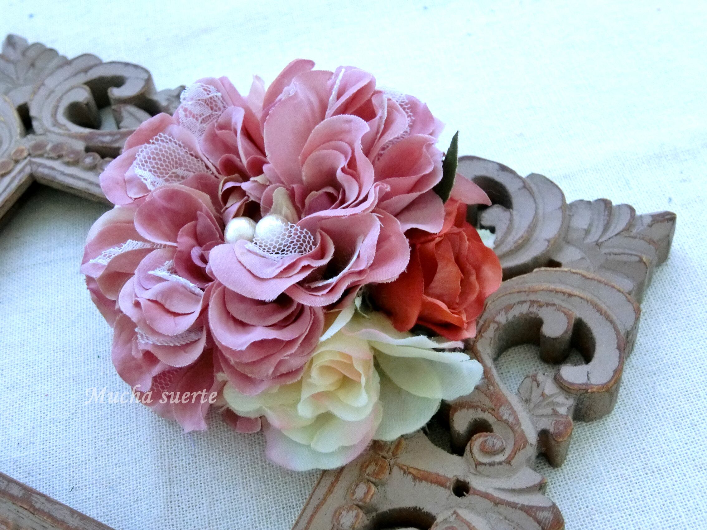 花びらの組み合わせによる個体差がございますがハンドメイドの良さととらえて、ご理解いただける方のご購入をお待ちしております。