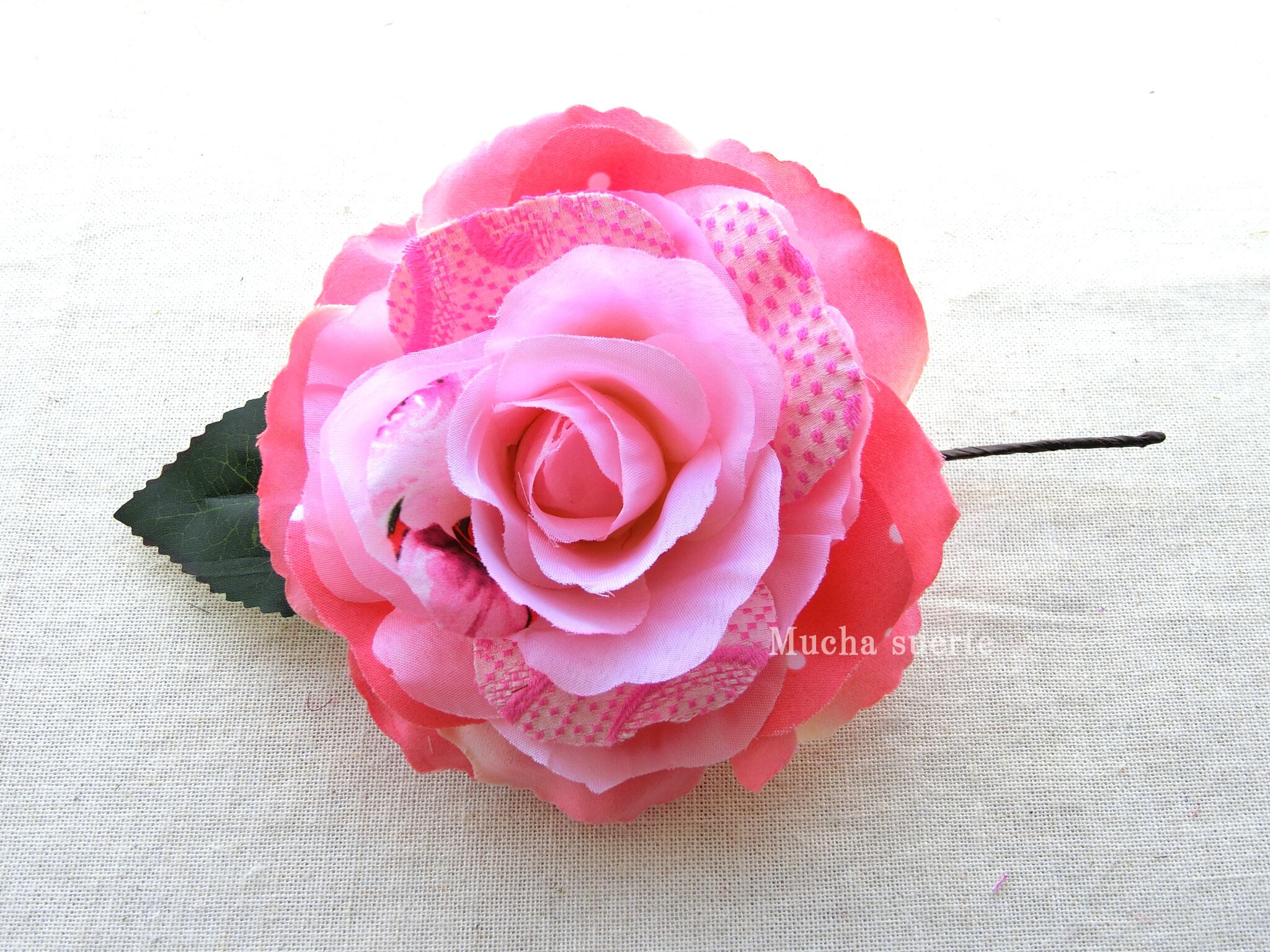 ピンク色の花びらに色々なピンクの生地を挿みました。
