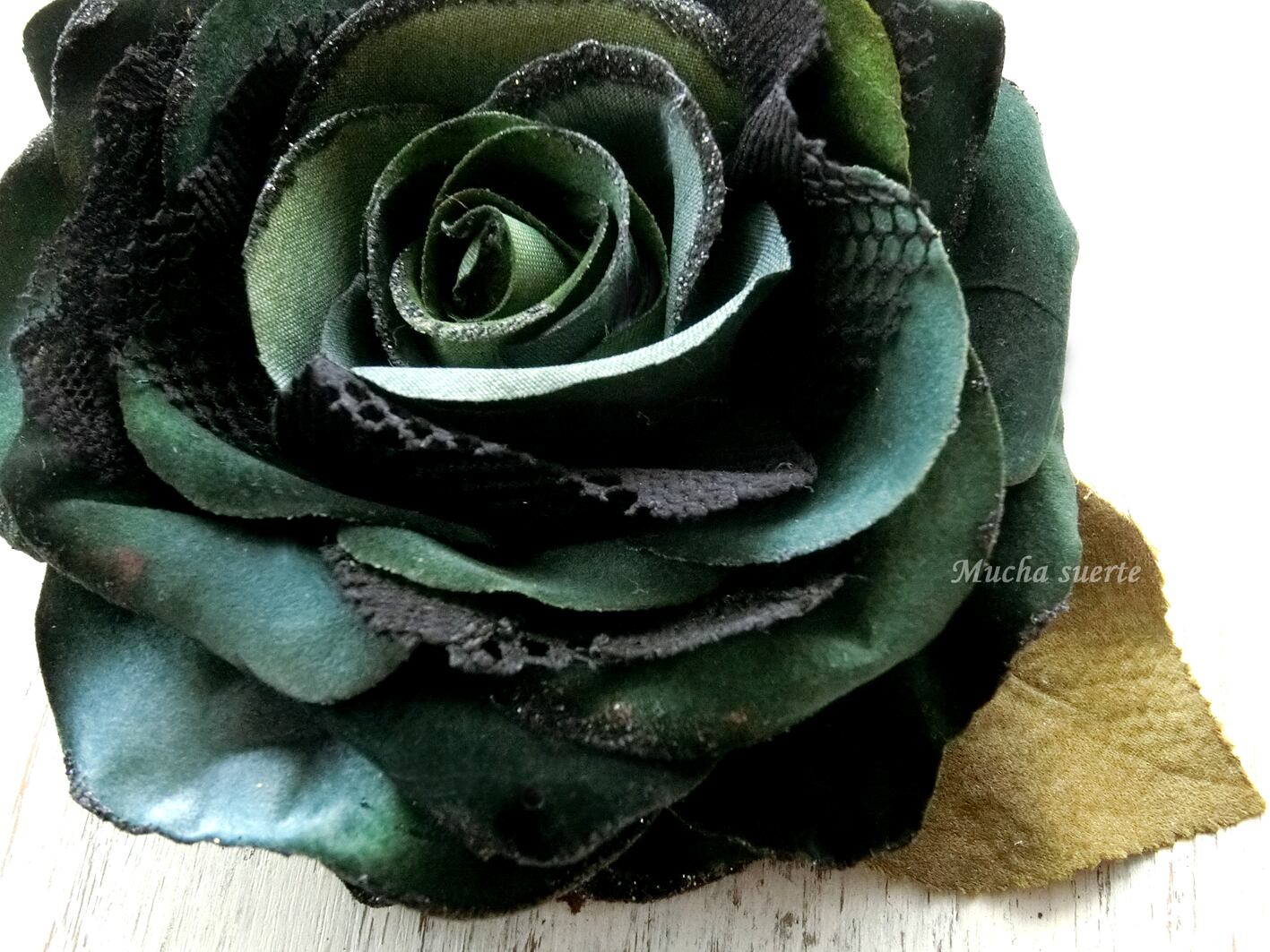 ベルベット調の深い緑の花びらにキラキラを施しました。