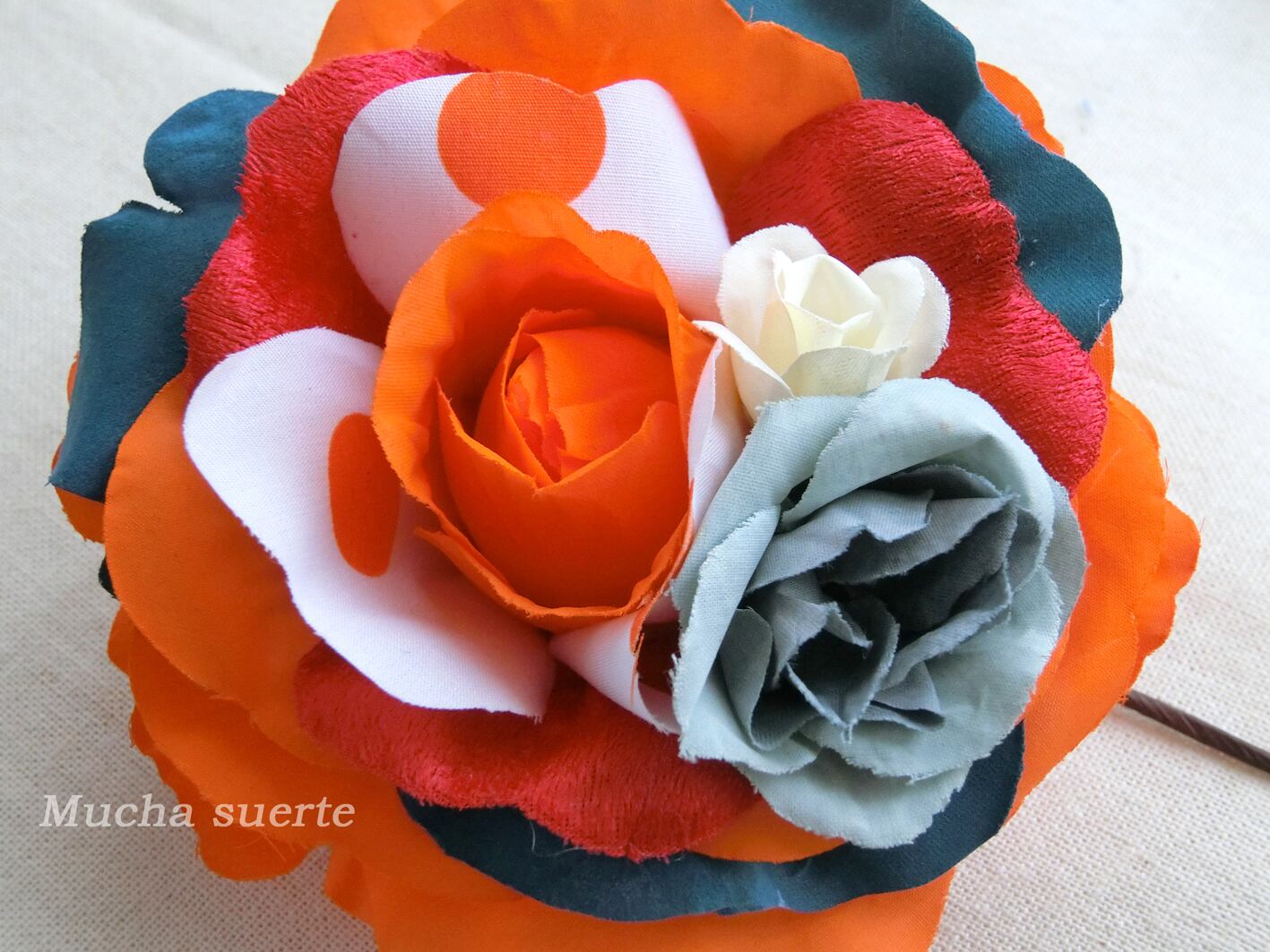 ネイビーや水玉、ベロア調の赤い花びらなどを挿みました。