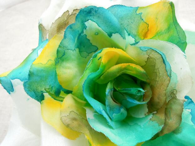ポリエステルの白いバラにアクリル絵の具で彩色しています。