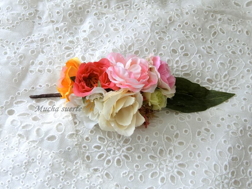 頭の後ろに付けたり、耳の横を這わせて付けたり、別のフローレスと組み合わせたり、