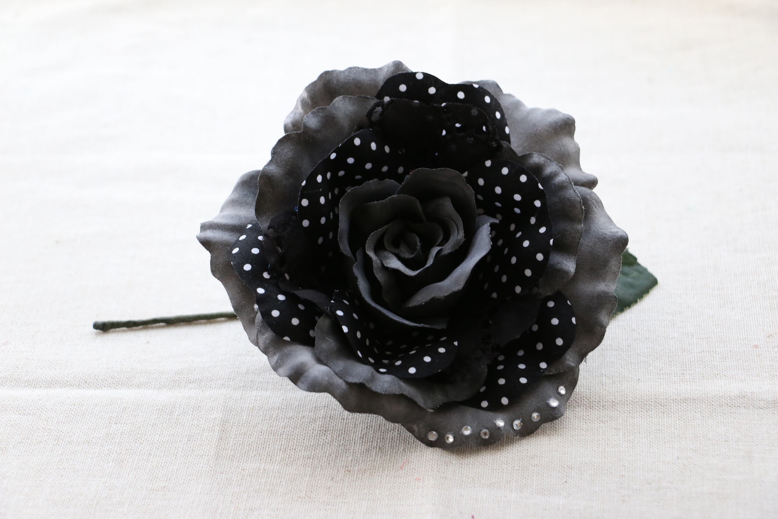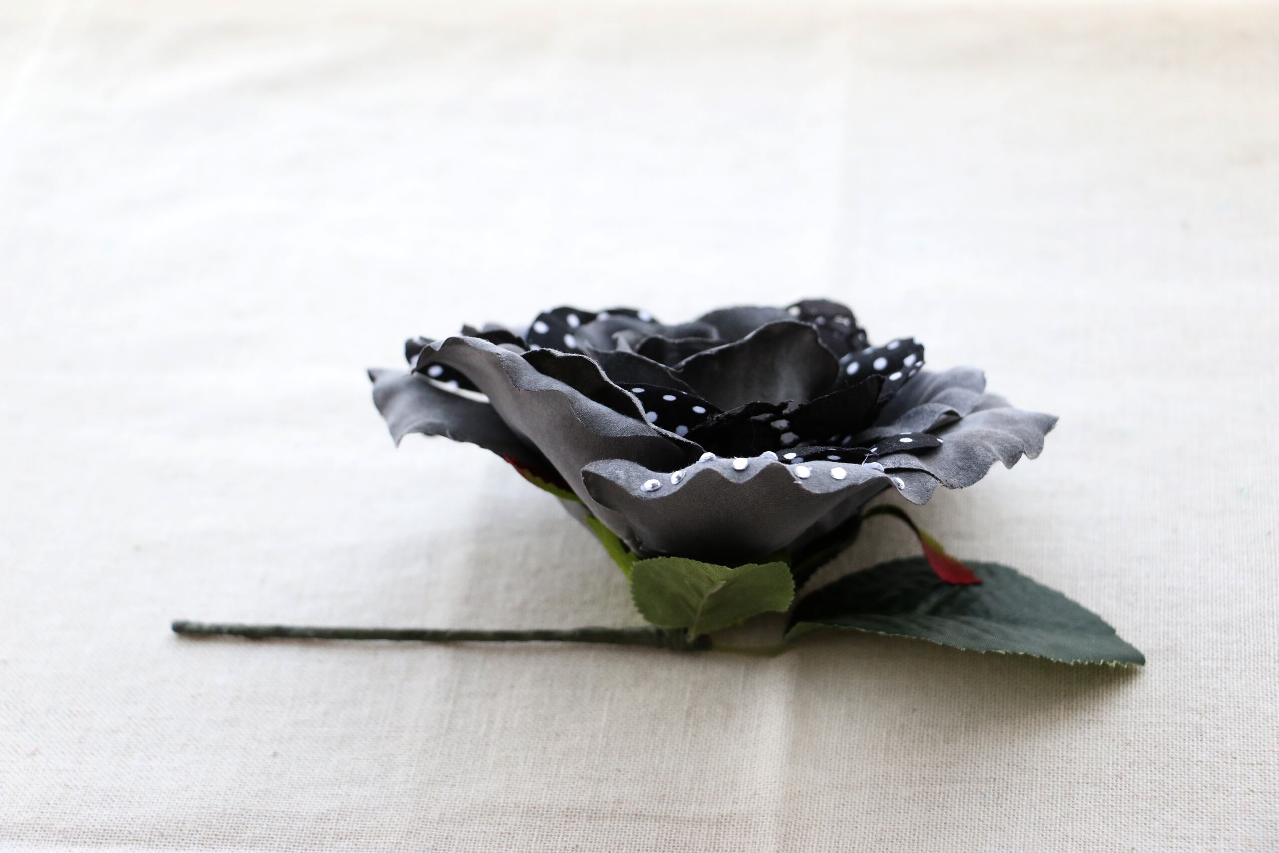 ポリエルテルの花びらに黒のアクリル絵の具で彩色を施し、