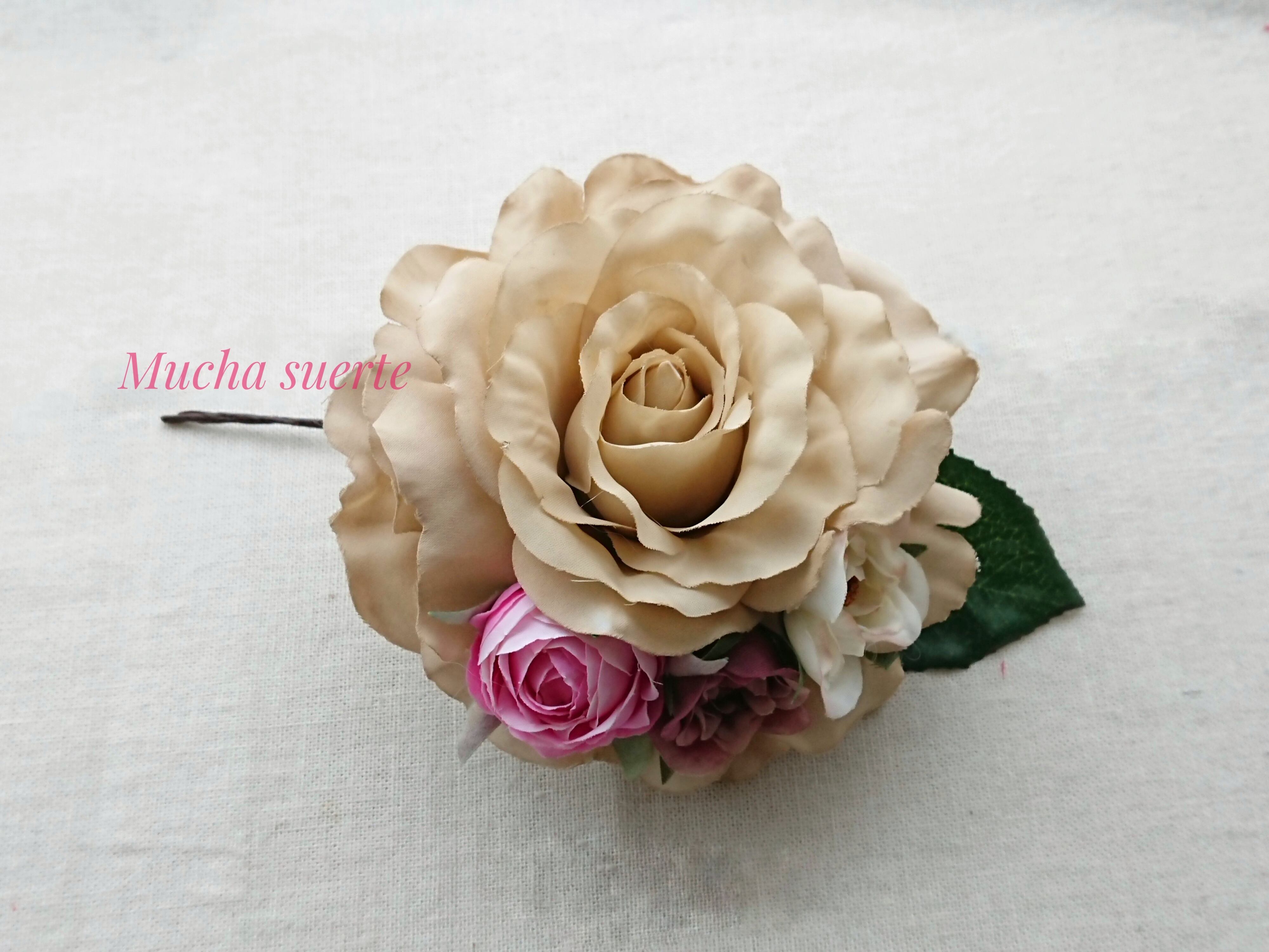 ベージュの花びらに小花をたくさん飾りました。