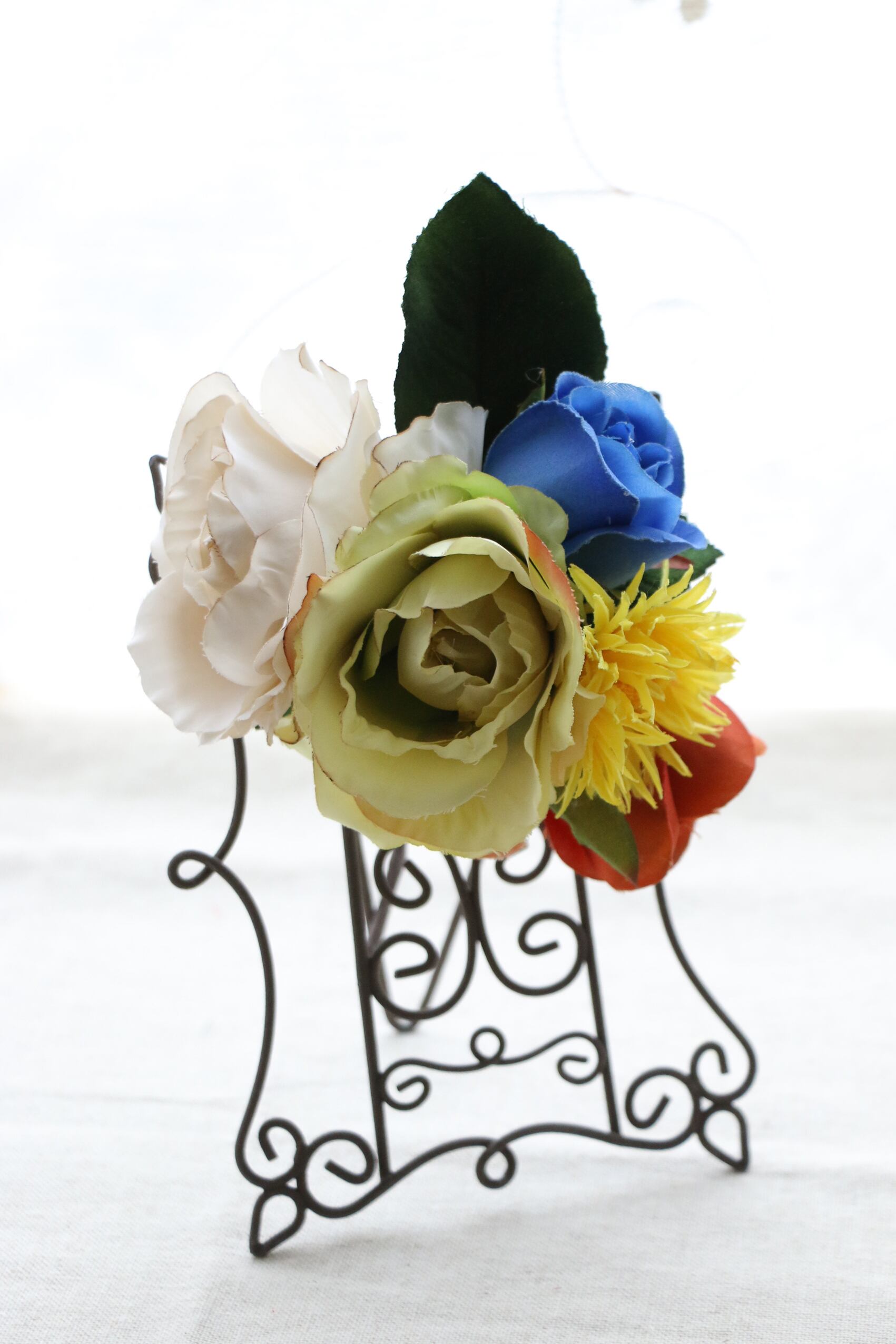 バラはコーヒーで染めてあり、花びらの先が焦げたようになっています。