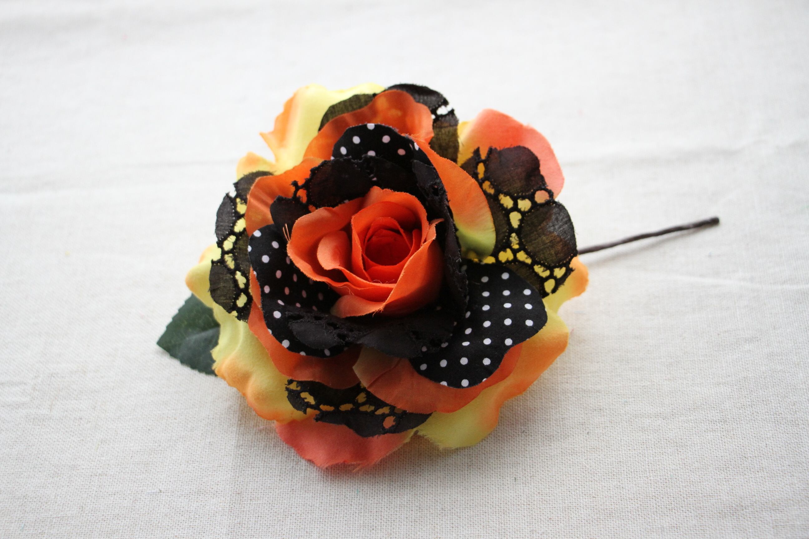 オレンジのポリエステルの花びらに黄色のグラデーションがアクセントに。