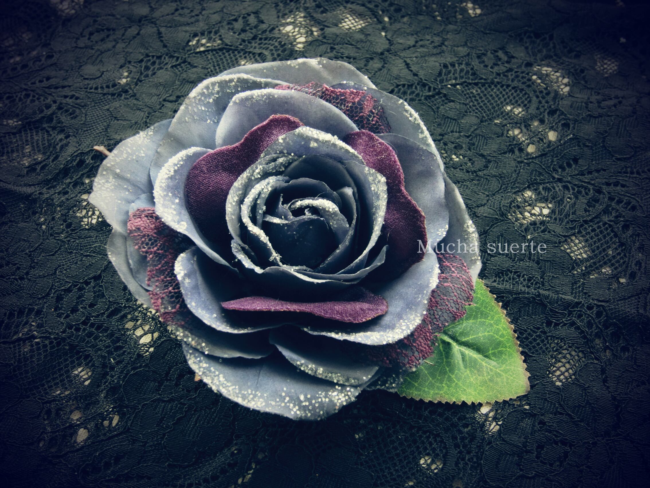 紺色がかったグレーの花びらにシルバーのキラキラフレークを施しました。